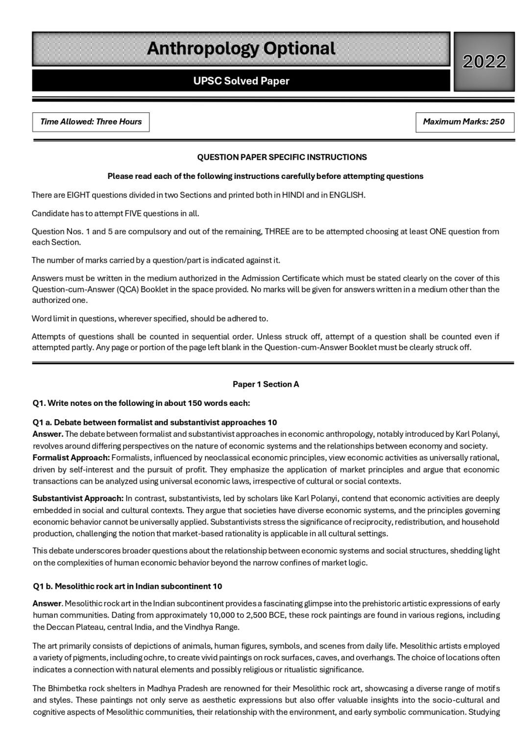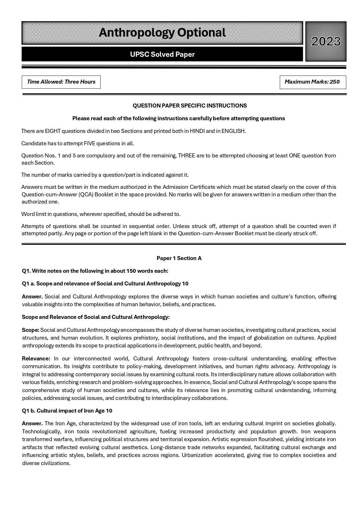 Explore the intricate world of Anthropology through this comprehensive guide featuring model solved papers for UPSC CSE 2018-2023. Gain invaluable insights into key concepts, theories, and exam strategies, making it an indispensable resource for UPSC aspirants in mastering Anthropology as an optional subject.