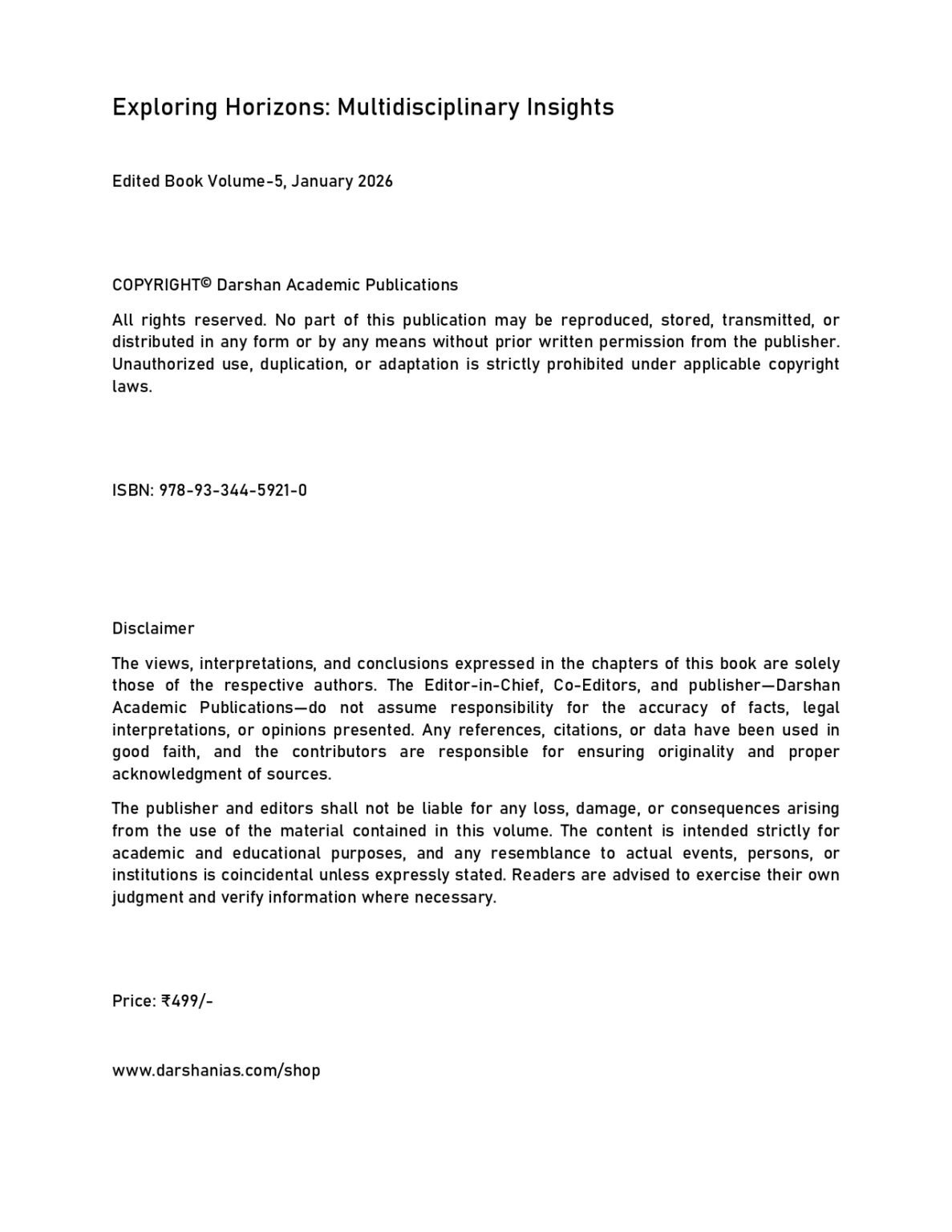 Exploring Horizons: Multidisciplinary Insights (ISBN: 978-93-344-5921-0) is an academically rigorous edited volume that brings together interdisciplinary research addressing contemporary social, educational, legal, managerial, technological, and philosophical issues. The book highlights the importance of cross-disciplinary perspectives in understanding complex and evolving global challenges.