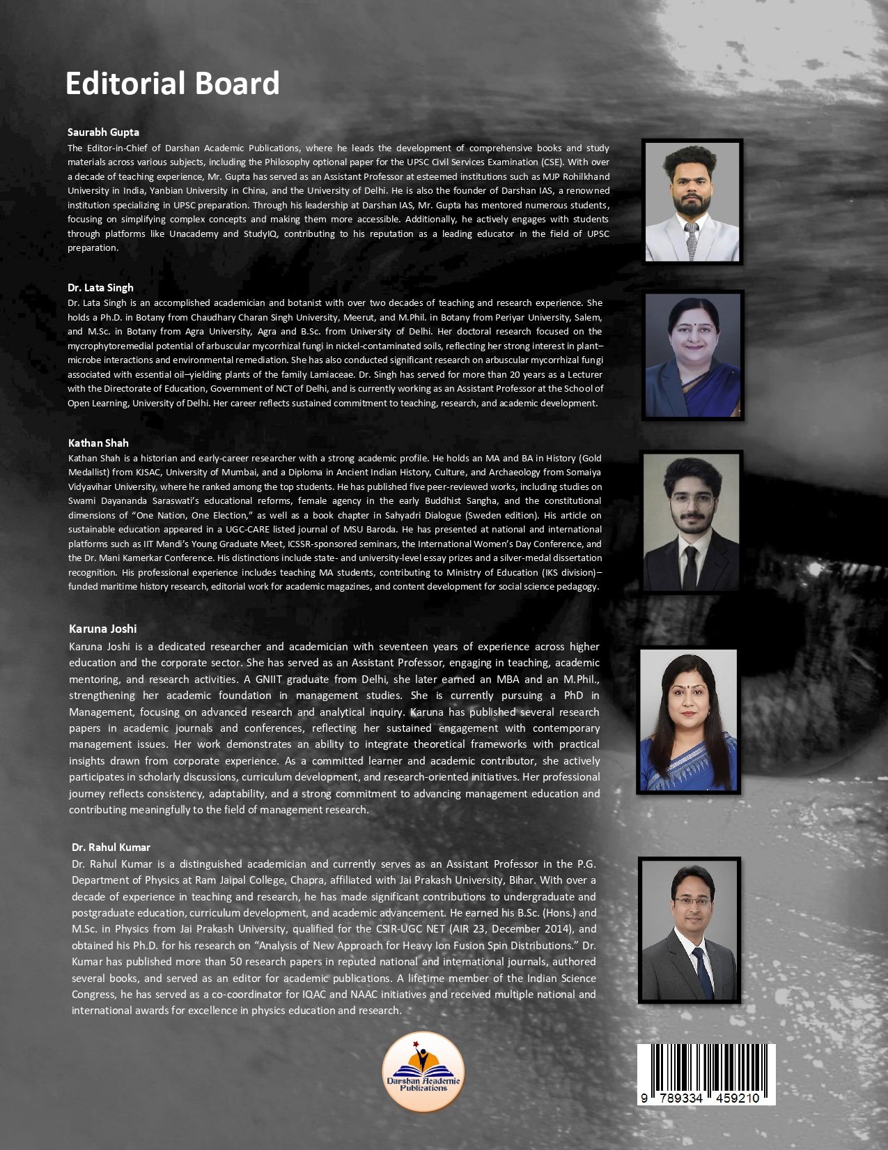The volume includes well-structured and research-oriented chapters contributed by scholars from diverse fields, making it a useful reference for postgraduate students, doctoral researchers, academicians, and institutions. It promotes critical thinking, analytical depth, and integrative learning across disciplines.